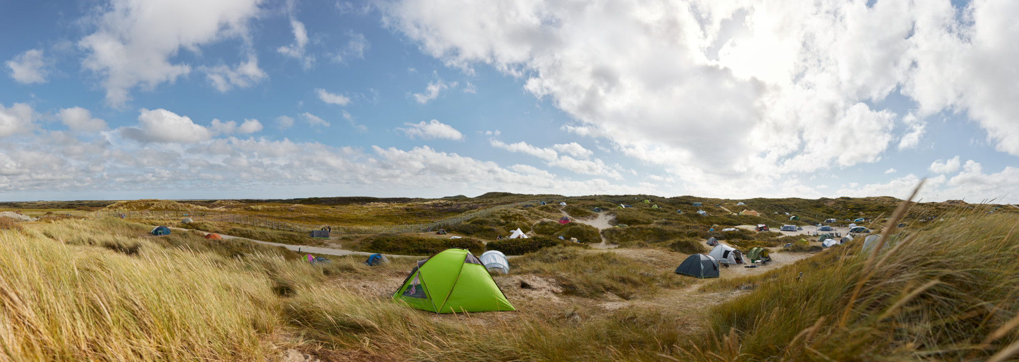 Die großzügig angelegte Zeltdüne im Süden des Campingplatzes bietet für jedes Zelt zwischen 4 und 20 m² den passenden Standort.